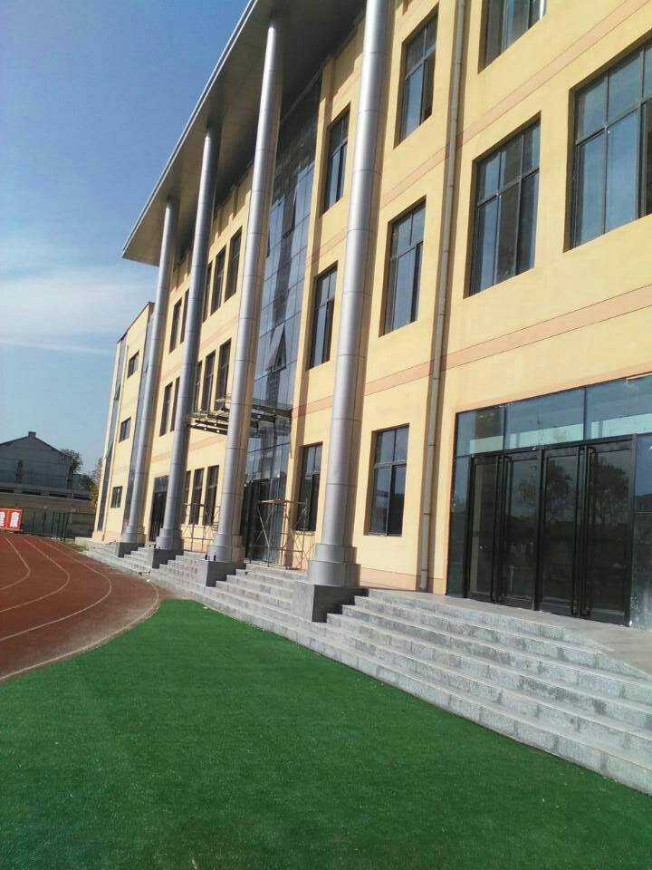 工程内容:玻璃幕墙,铝板幕墙,金属门窗,真石漆 光大彩票, 工程简介:本项目是陕西省周至县第二中学学生餐厅外墙工程,外立面为玻璃幕墙和金属门窗的配合,合理应用了幕墙的环保节能功能, 。