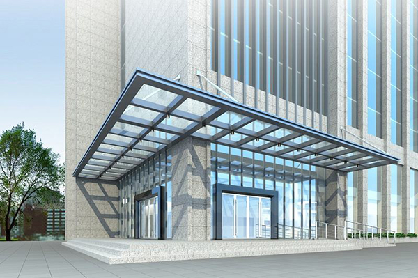玻璃雨棚,是以钢结构框架为主要结构,选用优质Q235材质的系列钢管等制作而成的防雨棚帐。钢结构是通过冷弯成型的弯圆设备弯制的;钢柱与基础面的的衔接采用预埋件或螺杆锚固技术;玻璃一般采用两层夹胶工艺,确保破了一层还有一层,伤不到人。